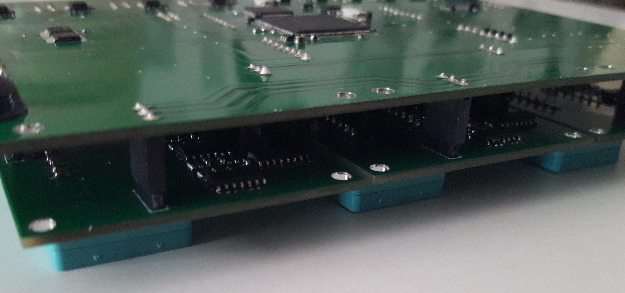The downsides....It's going to be quite a bit taller than the original; it requires FOUR four-layer pcbs, stacked on top of each other, using very tiny components (0204) that have to be very close together. So it will need strapping in with tie-wraps (we have a guide here for this operation). It will draw a little more standing current than the original, but not enough for it to be a problem.